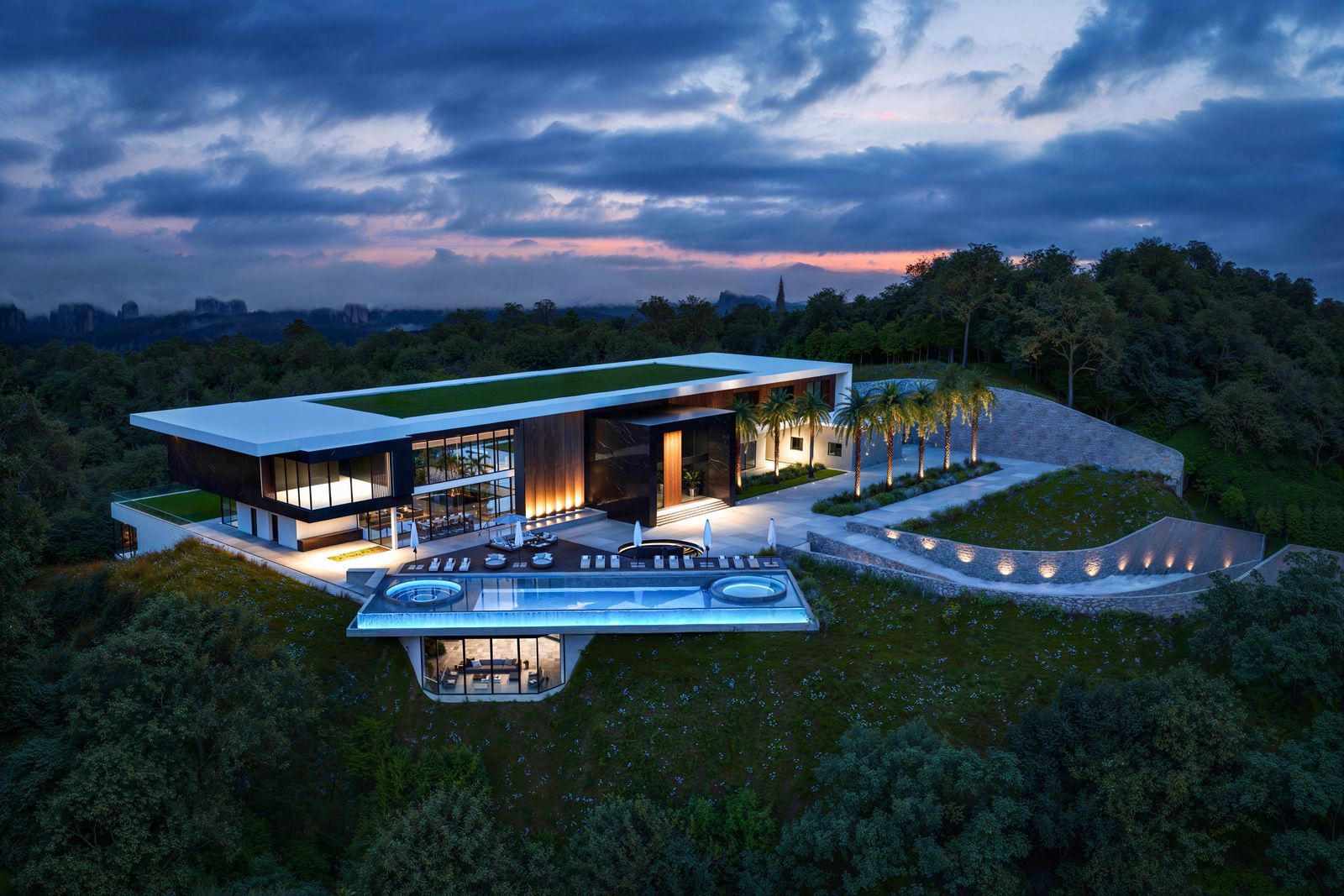 • Strategic lighting and water features, transforming the grounds into an ethereal nighttime setting.